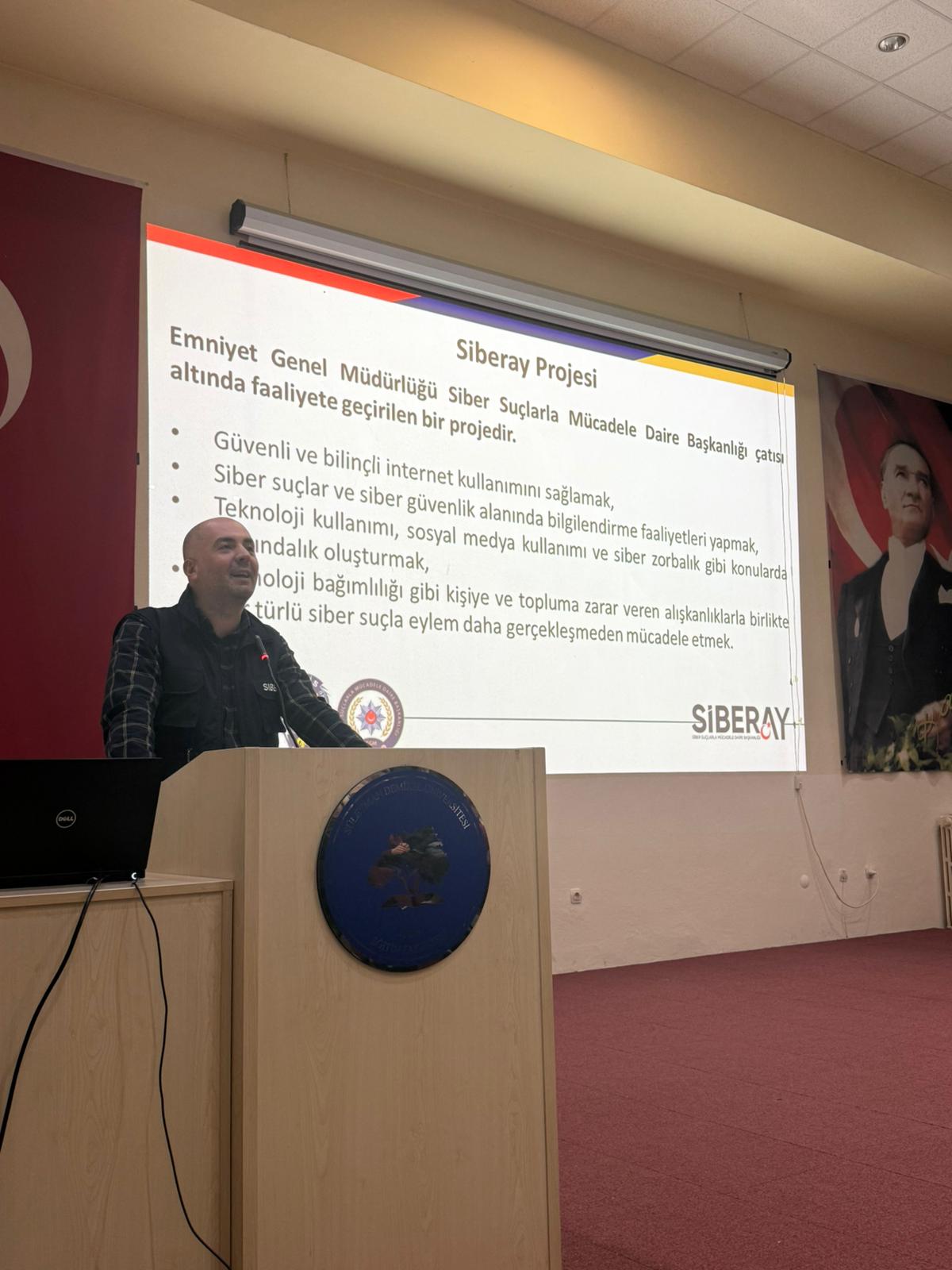 During the seminar, the police representative emphasized that cybercrimes have increased significantly in recent years and highlighted the importance of conscious and cautious internet use, particularly among young people. Topics such as common online fraud methods, phishing attacks, and the protection of personal data were discussed through practical examples.