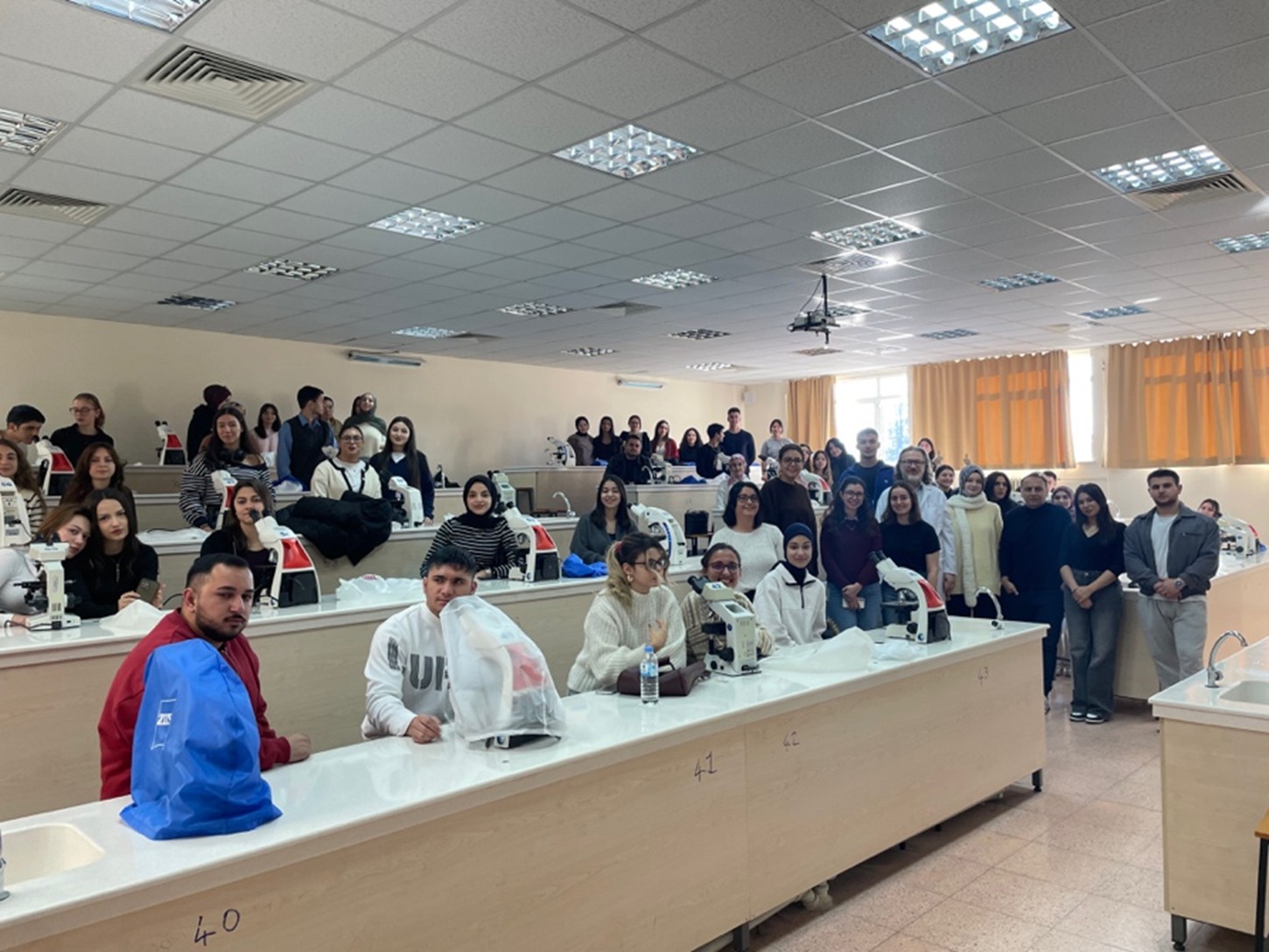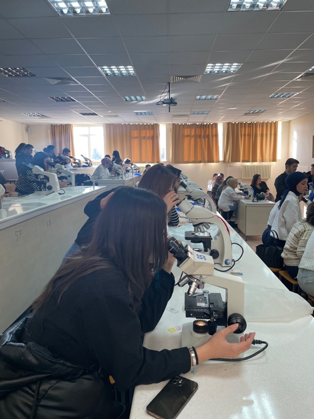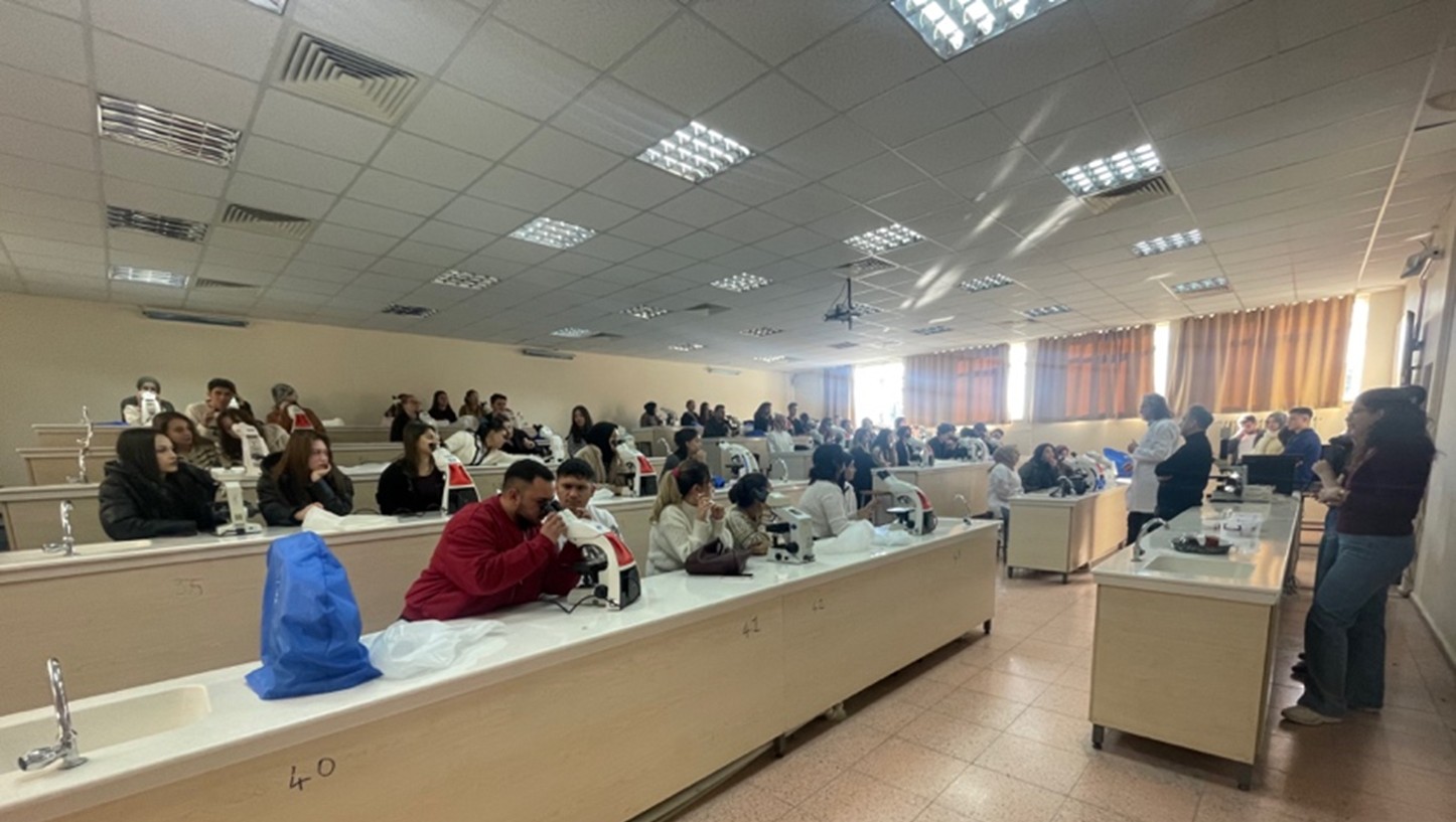 Etkinlik süresince öğrenciler, mikroskop başına geçerek çeşitli doku ve hücre örneklerini inceledi; odaklama, büyütme ayarları, ışık ayarı ve görüntü kalitesini değerlendirme gibi temel laboratuvar becerilerini yerinde uyguladı. Böylece öğrencilerin hem mikroskop hakimiyetlerinin artması hem de tıbbi laboratuvar uygulamalarına yönelik motivasyonlarının güçlenmesi hedeflendi.