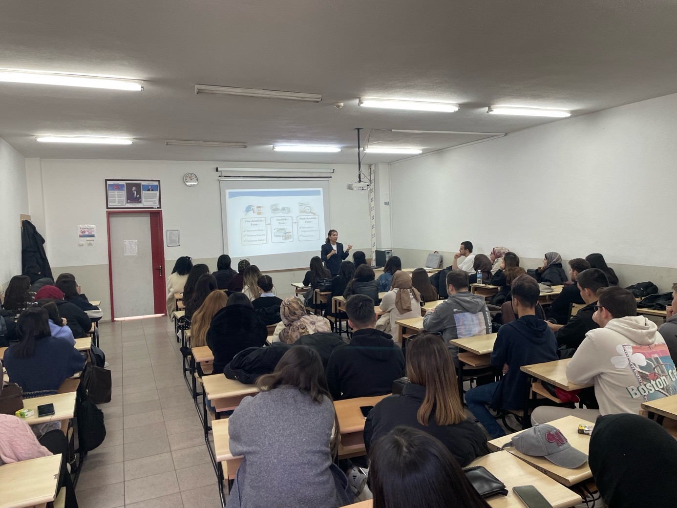 Eğitim süresince tıbbi laboratuvar hizmetlerinde hasta güvenliği ve kaliteyi doğrudan etkileyen preanalitik süreçler, numune kabul–red kriterleri, laboratuvar iş akışı, temel biyogüvenlik uygulamaları, kayıt/izlenebilirlik ve mesleki sorumluluklar gibi başlıklar ele alınırken, örnekler ve vaka temelli paylaşımlarla öğrencilerin teorik bilgilerini uygulama perspektifiyle pekiştirmeleri hedeflendi. Program sonunda katılımcıların geri bildirimleriyle eğitim çıktıları değerlendirilmiş; elde edilen sonuçlar, eğitimin içerik uygunluğu ve mesleki pratiğe aktarılabilirliği açısından yüksek düzeyde katkı sağladığını göstermiştir.